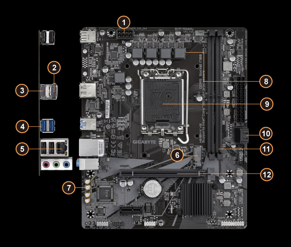 • لوحة الأم GIGABYTE H610M K V2 (الإصدار 1.0) هي لوحة Micro-ATX اقتصادية تدعم معالجات Intel من الجيل الثاني عشر والثالث عشر
